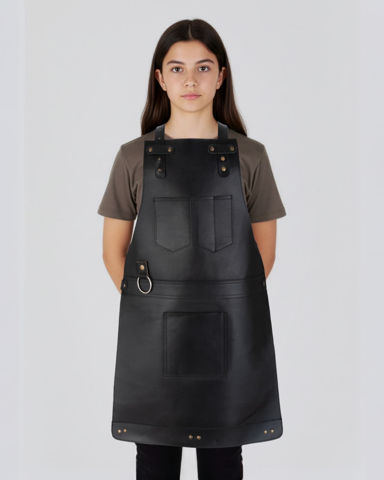 This apron is a top choice for those who adore luxury items. It's crafted from thick and long-lasting cowhide leather, featuring a rare distressed stonewash appearance that's a gem in real leather. Rest assured, the quality of this apron will exceed your expectations!